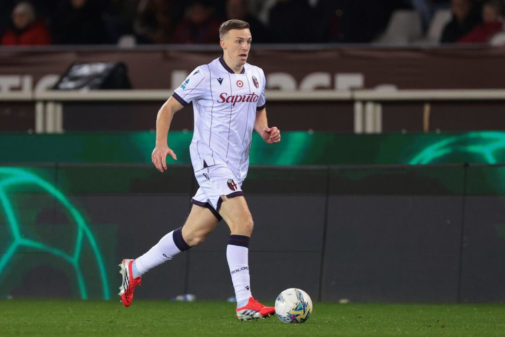 Lewis Ferguson (Bologna) durante jogo contra o Torino, no dia 15.02.2026. Foto: Sportimage Ltd/Alamy Live News