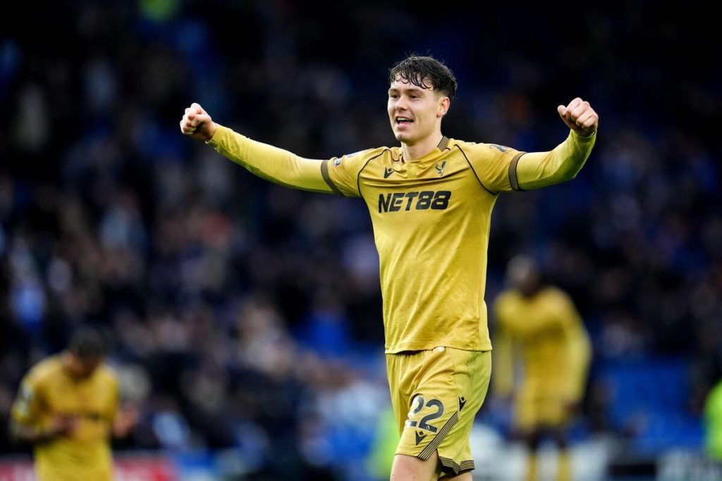 Jorgen Strand Larsen (Crystal Palace) celebrando seu gol em jogo da Premier League. Foto: PA Images / Alamy